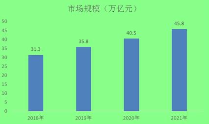 据数据显示,2018年中国数字经济市场规模为31.3万亿元,2019年中国数字经济市场规模为35.8万亿元,2020年中国数字经济市场规模为40.5万亿元同比增速13.16%。在“宽带中国”战略等重大政策推动下,高速宽带网络建设实现跨越式发展,建成全球最大的光纤网络。截至2021年11月,已开通5G基站139.6万个,占全球5G基站总数超过70%,5G终端用户达4.97亿。我国信息通信技术正在实现从“跟跑”、“并跑”向“领跑”转变。基础设施的不断完善,促进了我国数字经济的发展,到2021年,我国数字经济市场规模约为45.8万亿元。