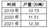 图表:2019-2021年我国毛发氨基酸行业生产规模