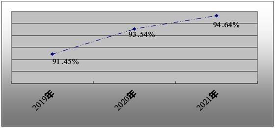 图表:2019-2021年我国毛发氨基酸行业产销率分析