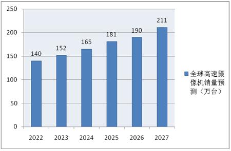 图表:2022-2027年全球高速摄像机销量预测(单位:万台)
