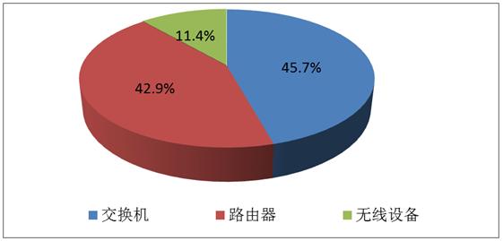计算机网络设备市场主要由交换机、路由器以及无线产品构成,其中交换机市场规模排第一,路由器次之,无线产品位列第三。在计算机网络设备制造行业里,随着行业集中度的提高,全球市场结构呈现出了垄断和竞争互相强化的态势,呈现出一种竞争性极强的寡头垄断市场结构。