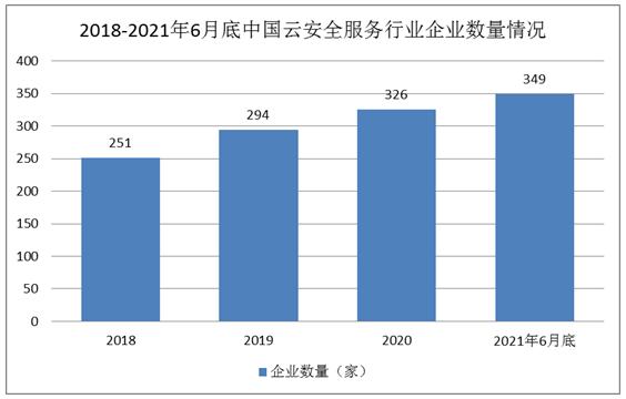 图表:2018-2021年6月底中国云安全服务行业企业数量情况