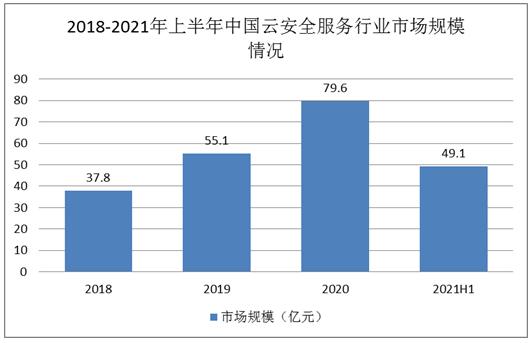 图表:2018-2021年上半年中国云安全服务行业市场规模情况