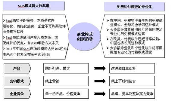 服务化成为软件产业转型的本质特征。软件构造技术和应用模式正在向以用户为中心转变。在软件销售模式上,用户不再需要软件许可证销售模式,仅需通过互联网购买服务即可。服务收费模式可以按照使用时间、使用次数、功能模块甚至计算量等多种方式进行,方便用户选择。在部署模式上,用户不需要购买大量软硬件,不仅节约了成本,也规避了风险。在运营维护上,用户不再需要配备大批专业人才队伍,不需要自己维护和升级信息系统。在服务模式上,用户需求完全定制化,用户可以根据需求购买软件功能模块,实现按需服务。云计算是软件服务化的一种主流模式,它可以按照用户需要动态地提供计算资源、存储资源、软件应用等资源,具有可动态伸缩、使用成本低、可管理性好、节约能耗、安全便捷等优点。