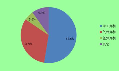无论是从价值还是产量方面来讲,手工焊所占比例最大,销售数量比重为52.60%。其次是气保焊,气保焊单价较手工焊高,销售数量只占31.9%,但销售额占比在40%以上。氩弧焊、切割机和其他产品占销售数量比重分别为5.60%、3.10%和6.80%。但随着我国焊接设备工艺的提高以及环保的要求,国内企业将向生产高效、节能、机电一体化和成套焊接设备方向发展,自动化焊接技术及设备正以前所未有的速度发展。