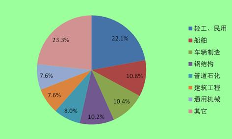 焊割设备被称为"钢铁缝纫机"是现代工业中最基础的加工工艺设备。轻工民用领域应用较为广泛,船舶制造、车辆制造及钢结构等应用领域紧随其后。