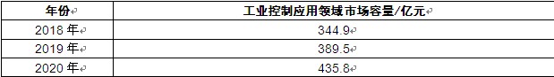 一、2020年工业控制应用领域产品及市场容量
