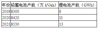 图表:2019-2021年我国电动自行车电池产能统计