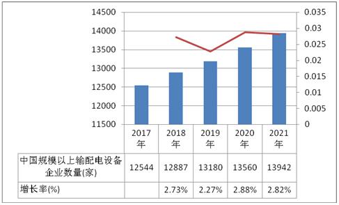 目前我国输配电行业企业众多,已由最初只有几家外资品牌垄断到实现百花齐放蓬勃发展。数据显示,2019年全国规模以上输配电设备制造企业数量达到13180家,2020年大约有13560家,2021年接近1.4万家的规模。