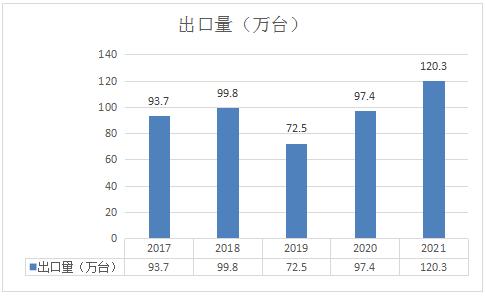 2019-2021年我国房车空调出口量呈增长态势,2021年出口量达到了120.3万台。