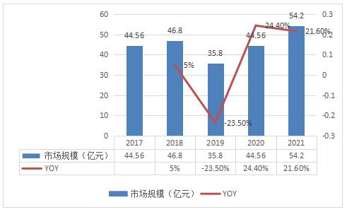 图表:2017-2021年中国房车空调市场规模情况