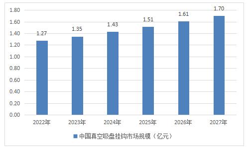 图表:2022-2027年中国真空吸盘挂钩行业市场规模(亿元)