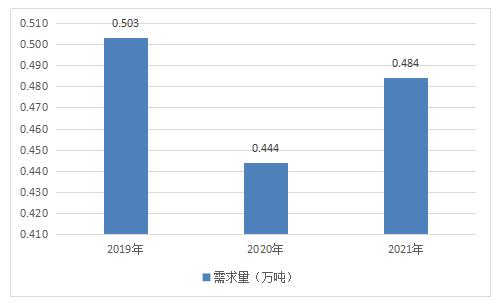 2019年中国真空吸盘挂钩需求量为0.503万吨,2020年需求量为0.444万吨,2021年需求规模为0.484万吨。