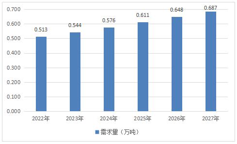 图表:2022-2027年中国真空吸盘挂钩行业需求规模(万吨)