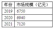 图表:2019-2021年中国牛肉行业市场规模