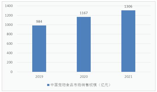 图表:2019-2021年中国宠物食品销售规模