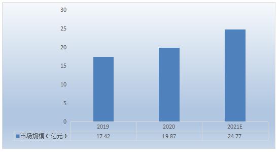 图表:2019-2021年国内鳕鱼肠市场规模(单位:亿元)