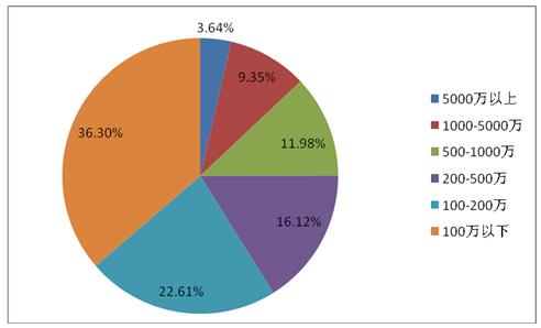 在这上万家企业中,注册资本在5000万(含)以上的仅有370家,注册资本1000-5000万(不含)的有951家,注册资本在500-1000万之间的有1219家,注册资本在200-500万(不含)的有1640家,注册资本在100-200万(不含)的有2300家,注册资本100万以下的则有3692家。