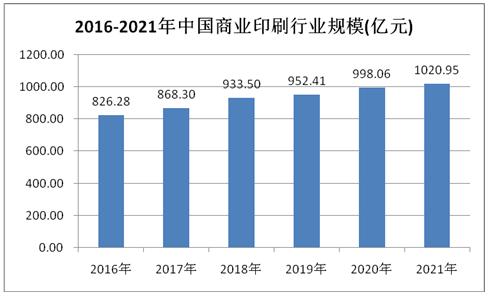 伴随着国民经济平稳较快地发展,出于商业宣传的需要以及其他商业活动的活跃(比如,电子商务带动快递业务的发展),我国商业印刷业也持续保持了高速增长。从2016年到2021年,中国的商业印刷行业从826亿元增长到了上千亿元的规模,预计将达到1021亿元。