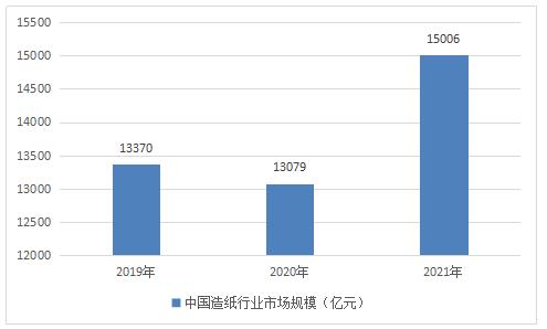 图表:2019-2021年中国造纸行业市场规模(亿元)