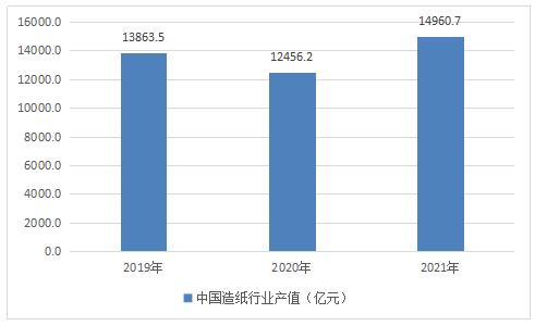 图表:2019-2021年中国造纸行业产值(亿元)