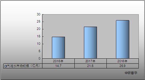 图表:2016-2018年中国气泡水行业市场规模