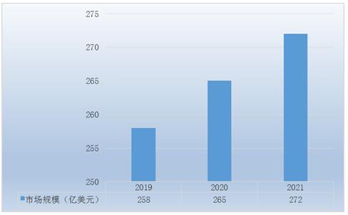 2019-2021年,全球硅酸钙市场规模呈现逐年增长的态势。2019年,全球硅酸钙行业市场规模为258亿美元,2021年全球硅酸钙行业市场规模达到272亿元。