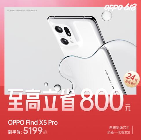 当然,除了OPPO Find N和OPPO K10,OPPO当家旗舰Find X5系列此次618也带来了至高立省800元的优惠。作为OPPO的旗舰级产品,Find X5 Pro不仅有一体化的机身设计,而且还拥有高通骁龙8 Gen1+LPDDR5+UFS3.1性能组合。影像方面,更是搭载了自研马里亚纳X影像专用NPU芯片和哈苏影像系统,实现了视频和照片拍摄效果的全面升级。