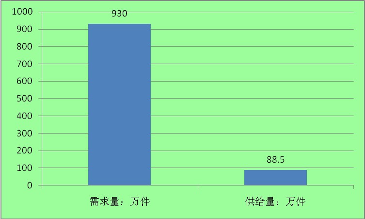 据抽样调查分析,在全国现有肢体残疾人2412万人中,约有38.56%的人有配置假肢和矫形器等辅助器具的需求,即930万人(约占总人口的0.7%)据不完全统计,目前全国600多家各类假肢矫形器生产装配机构,主要产品的年产量为:假肢为6.5万件,矫形器(矫形鞋)约为23万件。按产品的平均寿命为3年计算,相当于只有88.5万具假肢矫形器(矫形鞋)在使用中。这只能满足930万有配置假肢和矫形器等辅助器具需求者的9.5%,尚有90.5%需求者未能如愿。