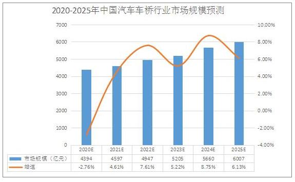 图表:2020-2025年中国汽车车桥行业市场规模预测
