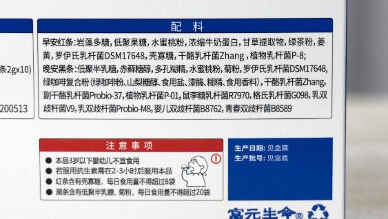 以下面这款“元生益幽”益生菌为例,配料表中多达10种益生菌(罗伊氏乳杆菌DSM17648属于灭活类益生菌,不作统计):干酪乳杆菌Zhang、植物乳杆菌P-8、副干酪乳杆菌Probio-37、植物乳杆菌P-01、鼠李糖乳杆菌R7970、格氏乳杆菌G098、乳双歧杆菌V9、乳双歧杆菌Probio-M8、婴儿双歧杆菌B762、青春双歧杆菌B8589。