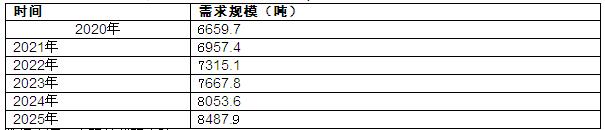 图表:2022-2025年高纯氧化铝市场需求规模预测