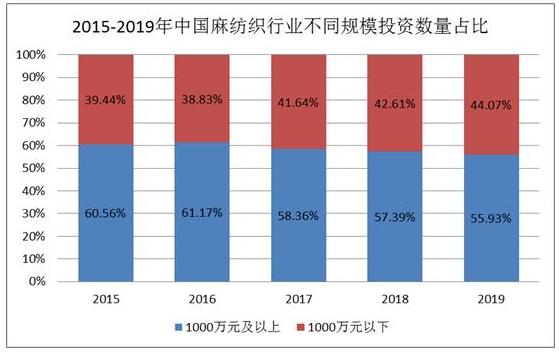 图表:2015-2019年中国麻纺织行业不同规模投资数量占比
