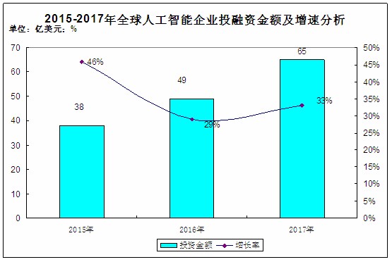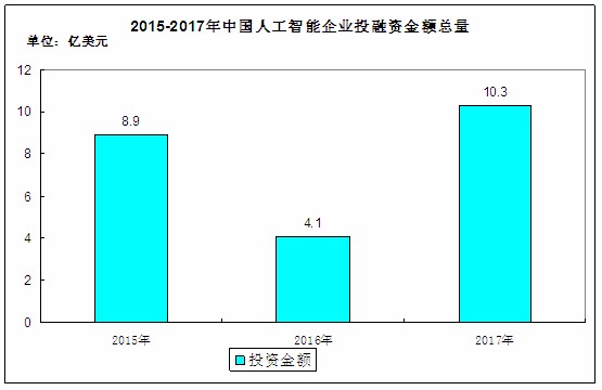 图表:2015-2017年我国人工智能企业投融资金额总量