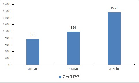 截至2021年底,我国新能源汽车的保有量为784万辆。预计在2021年,我国汽车后市场的规模大约为1568亿