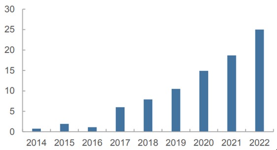 图表:2022中国智慧城市市场规模统计及预测(万亿元)