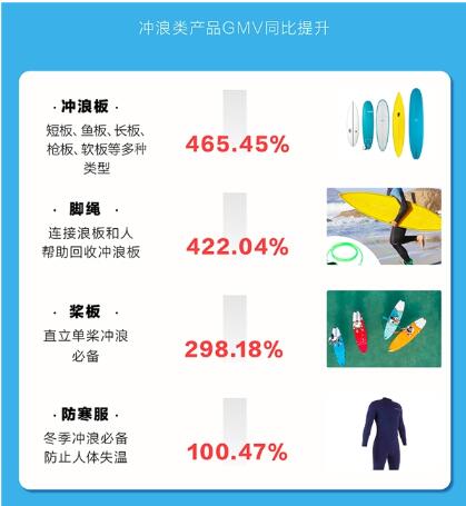 据什么值得买水上运动行业负责人刘弘韬介绍,近年来伴随政府层的支持,赛事的举办,包括2020年冲浪被国际奥委会确定纳入奥运项目都助推冲浪热。但另一方面,冲浪在中国的兴起不足十年,不论用户覆盖程度还是产业发展规模,都处于起步阶段。