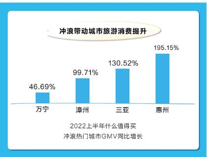 冲浪热潮下,与之相关的旅行、装备等消费也随之提升。海南万宁、三亚,福建漳州,广东惠州,广西北海等地凭借天然的地理、风力因素,一直是冲浪爱好者的胜地。在什么值得买,城市旅行消费的提升也直接映射出其背后的冲浪热。2022年上半年,冲浪热门城市万宁、漳州、三亚、惠州城市旅行消费皆有明显增长,GMV分别同比提升46.46%、99.71%、130.52%、195.15%。
