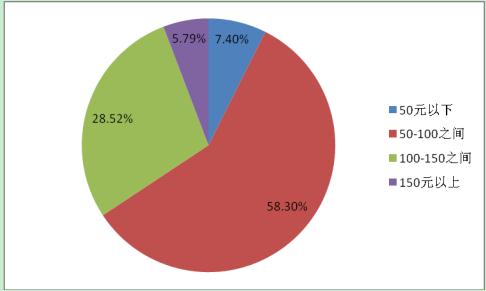 从产品结构看,50-100元之间的产品占比65%左右,100-150元之间的产品占比约在26%左右,50元以下和150元以上的产品数量占比不到10%。
