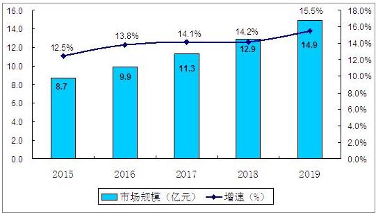 图表:2015-2019年中国拌饭料市场规模及增速