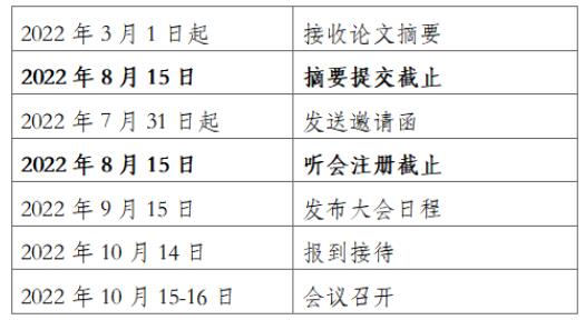 截止日期:摘要提交截止日期为2022年8月15日。每位作者至多提交两篇。