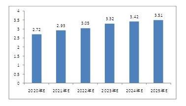 图表:2020-2025年办公椅市场需求预测(亿件)