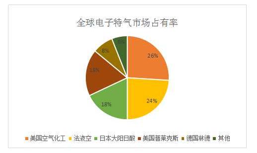 图表:全球电子特气市场占有率