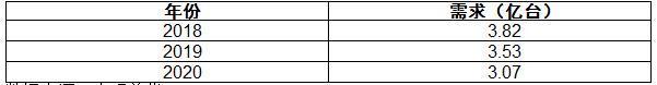 2018-2020年中国智能手机需求从3.82亿台下降到3.07亿台。