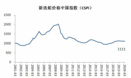 2020年3月,新造船价格中国指数为1111点,环比下降1点。其中,散货船、油船的新造船价格中国指数分别为1352点、1198点,环比持平;集装箱船新造船价格中国指数为848点,环比下降4点;液化气船新造船价格中国指数为1391点,环比上升2点。