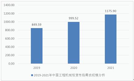 2019年的中国工程机械租赁需求市场是849.59亿元,并且在2021达到了1175.9亿元。