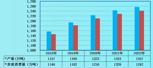 图表:2018-2022年全球超级食品产量、表观消费量