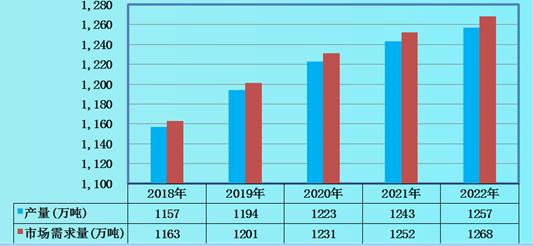 图表:2018-2022年全球超级食品产量、市场需求量