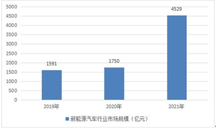 2020年,中国新能源汽车行业市场规模约为1750亿元,为促进国内经济复苏,各地区加快了对新能源汽车的政策扶持,新能源汽车的需求量较大。2021年,新能源汽车销量大增,市场规模为4529亿元。