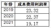 图表:2019-2021年智慧停车行业成本费用利润率(单位:%)